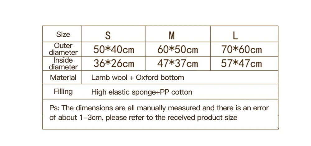 1.Luxurious material:The inside of the bed is made of faux wool, which provides warmth and comfort. The outside of the bed is made of oxford dacron, which is waterproof and wearproof. The combination of these two materials can meet all needs your pet has.